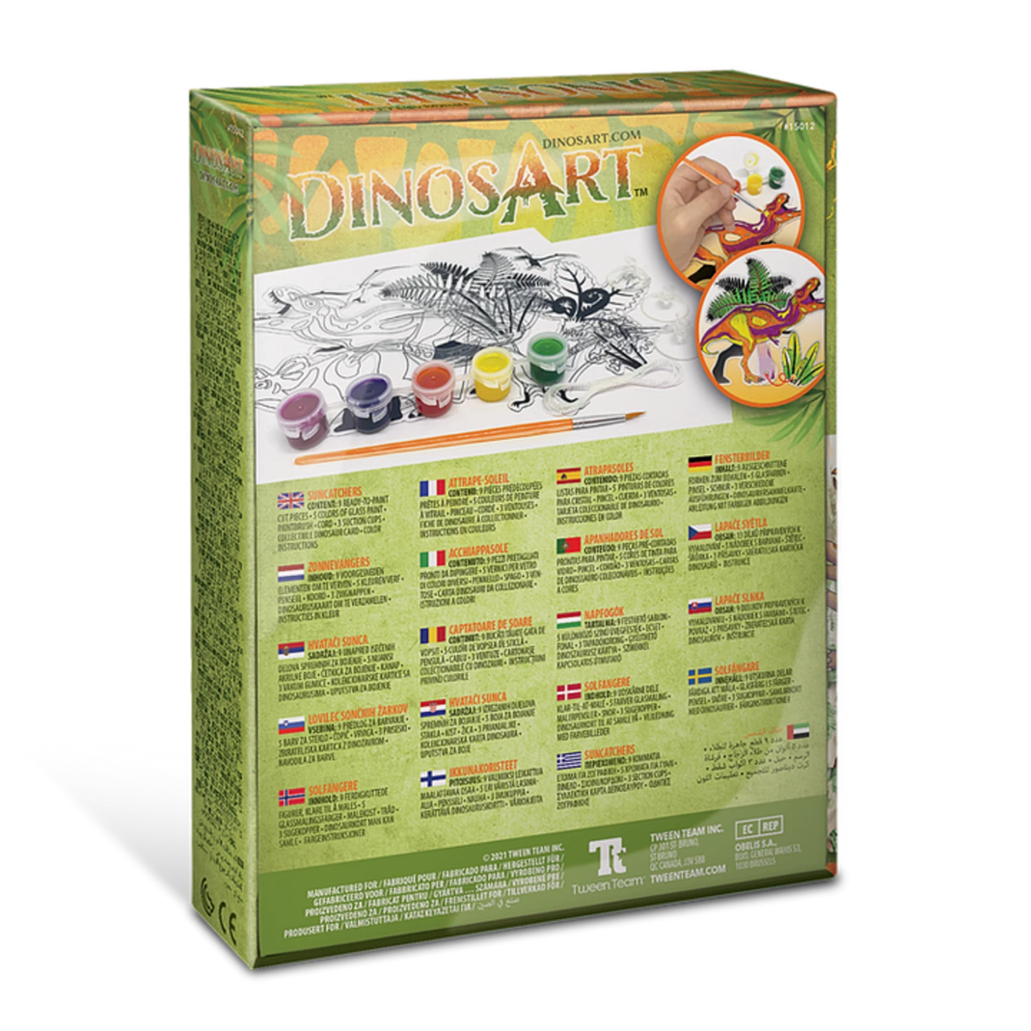 Kit Includes: 9 shapes to paint as well as 5 glass colour paints, a brush, suction cups & cord.Â
