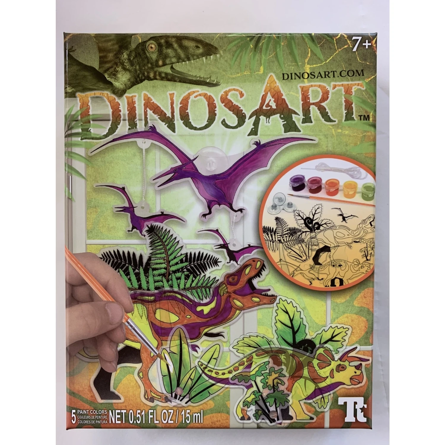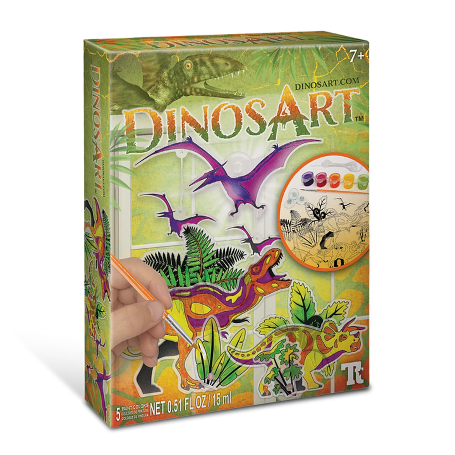 Great window art, This kit will make 3 dinosaur suncatchers. Colour in the cut parts and tie them to a suction cup, attached to windows or a mirror.