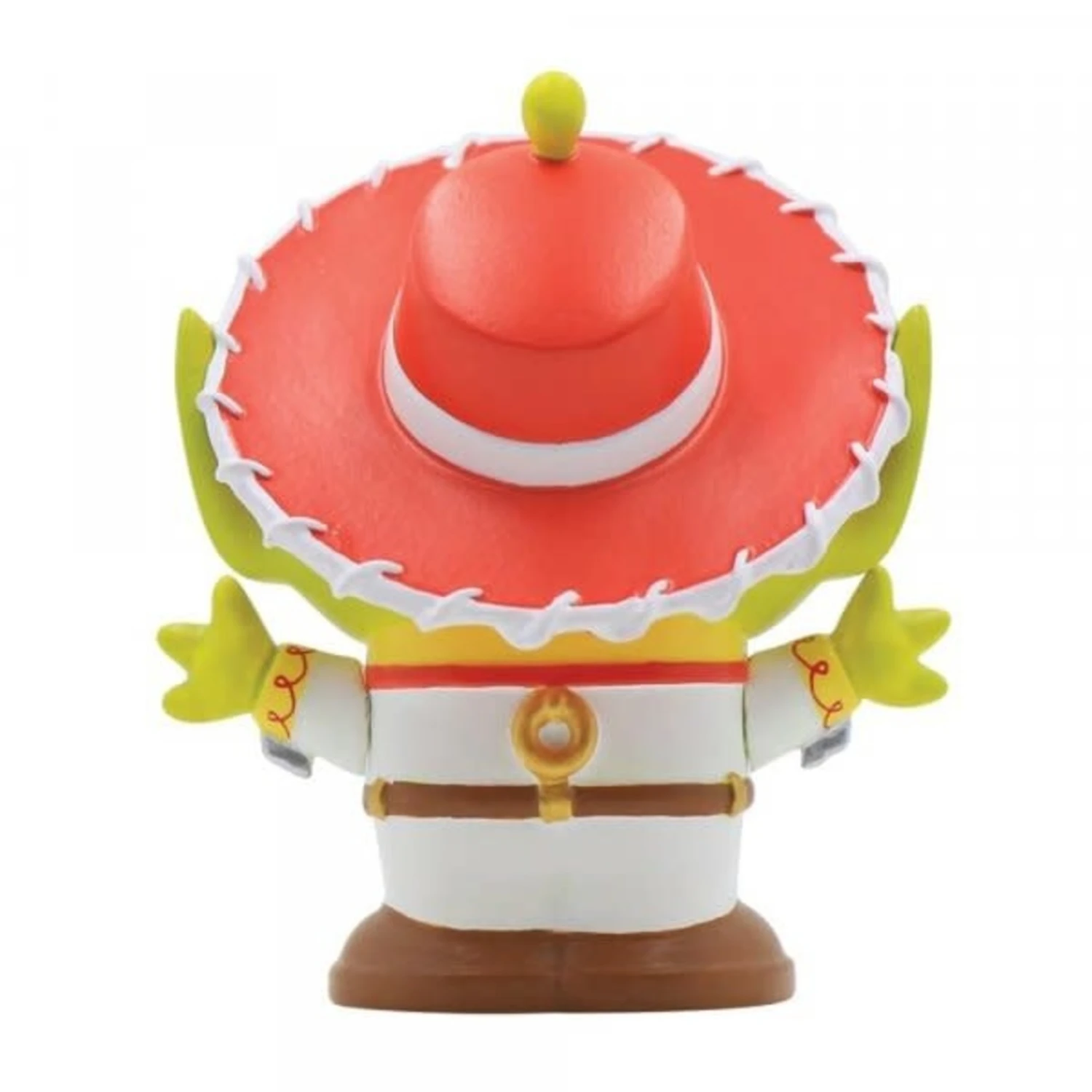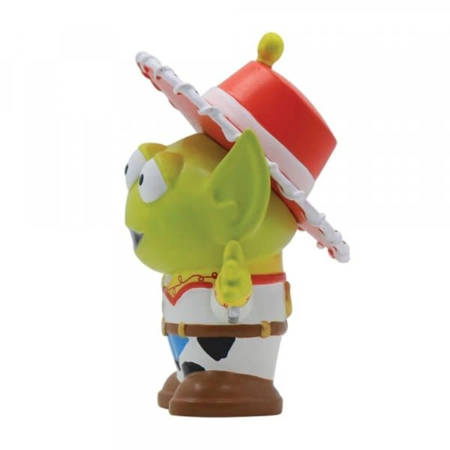 The Pizza Planet aliens seem to be attending a Pixar party this evening. Masquerading as their favourite characters, the aliens don an array of Disney disguises. This one dresses as Toy Story’s Jesse, with a red cowgirl hat and uniform.