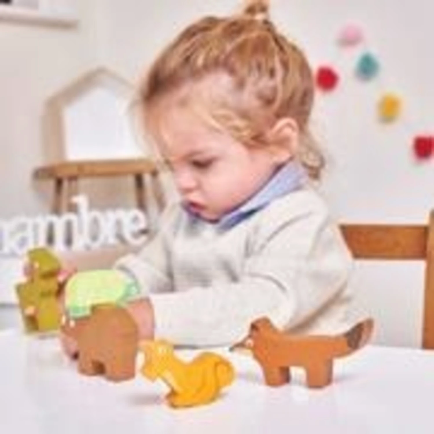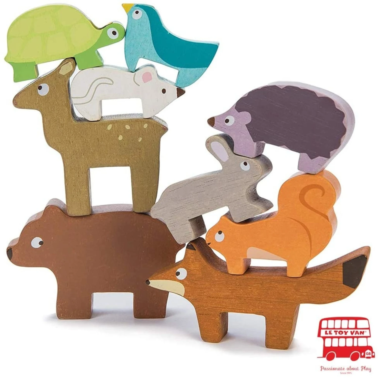 Who can stack the animals the highest before they tumble down? A set of 9 wooden stacking animals complete with handy draw string bag to play anywhere. The woodland animals are made of solid wood ethically made from sustainable legal wood and the set is entirely plastic free! A fantastic gift for toddler! Safely tested for children from 18 months+.